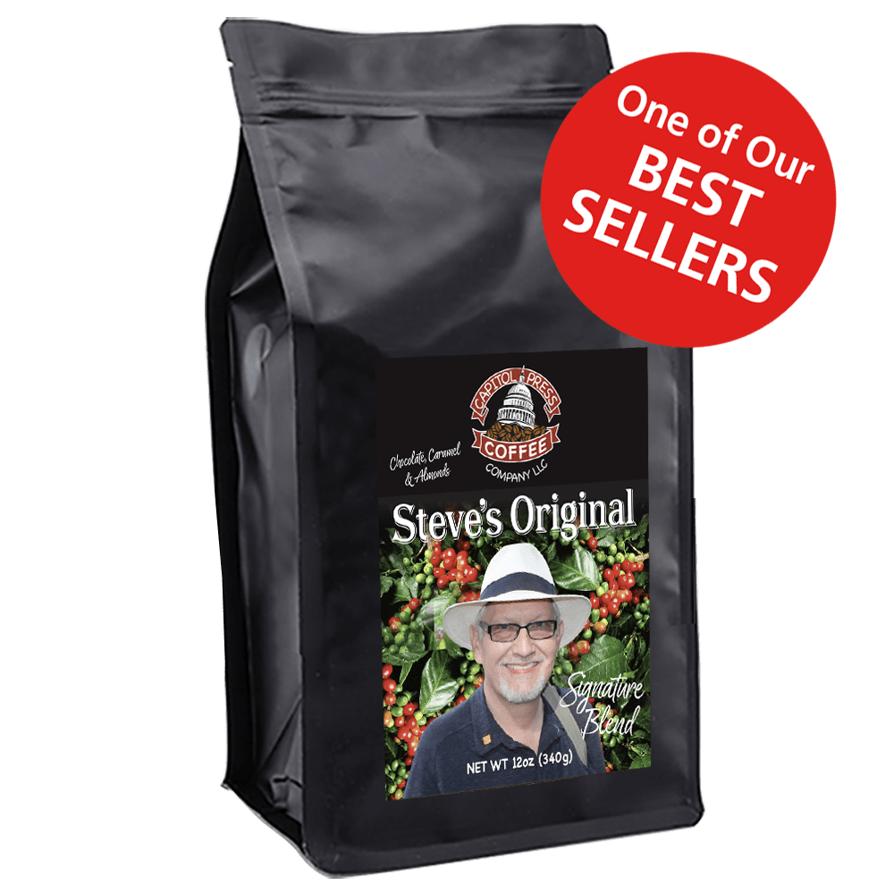 12oz bag. This blend was created by my late husband and founder of Capitol Press Coffee Co. This is our most prized blend winning 2 awards at Golden Bean in 2017 and 2019. It is a combination of South American, Central American, and African coffee. This combination brings together a smooth balanced cup with sweet, chocolate, nutty flavors with accents of fruit. Making this a coffee for any occasion and best for any brew method.